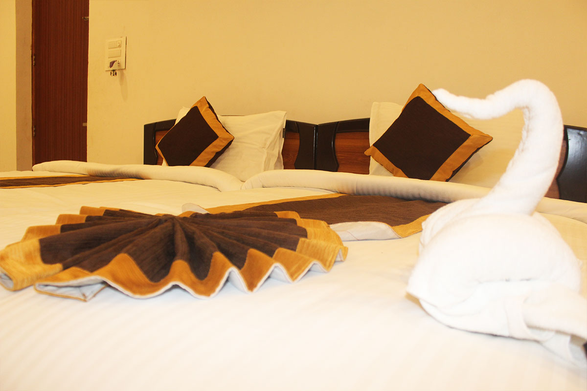 You can either book your room by calling our front desk at 97330 00447 or filling up the booking form on our website.